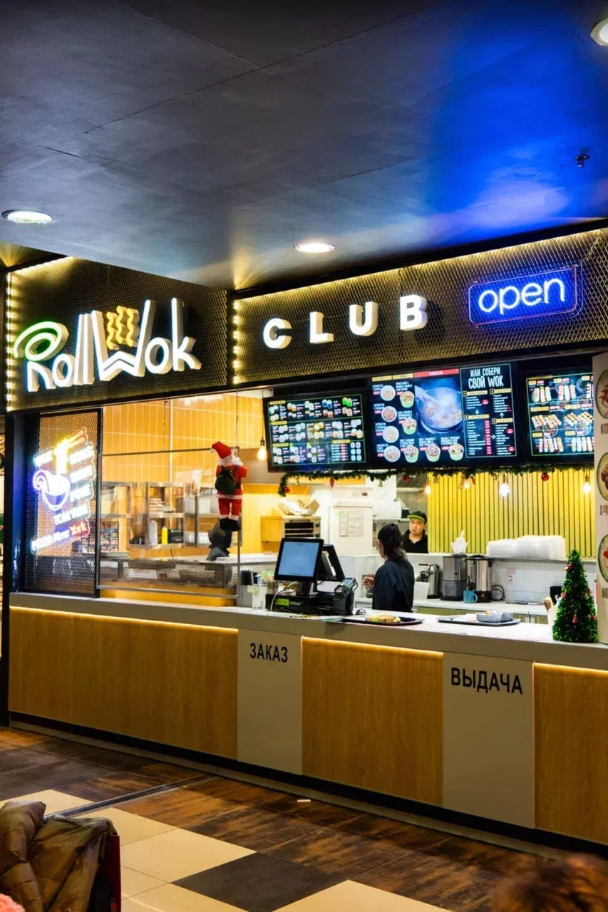 Брендирование торговых точек суши-бара «Roll Wok Club» в Купино